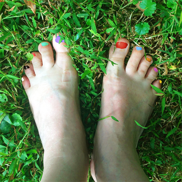 Okay, I live in the world. I see other women’s feet. For goodness sake, it’s been summer for the past several months. We’ve all been living in a world of toes. And if you’re looking at women’s toes, you’re also, almost a hundred percent of the time, seeing the shiny, tiny nails at their tips. Pink, red, orange, blue of every hue, purple, day-glo green and even black. Sometimes with little bitty polished pictures on the big ones.