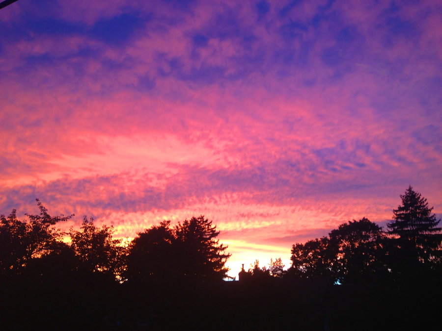 Which brings us back to Mom, who called me on the phone a few evenings ago. Just to say, “Go outside right now! Before the sun sets!” The entire horizon was massively magenta, glinting goldly, the October branches of our big oak arching starkly against the sky.