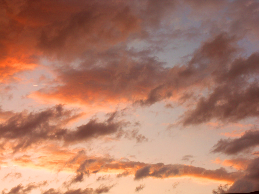 Not just sunsetting clouds. All kinds of clouds. Stratus, cirrus, cumulus, stratocumulus, culumonimbus. Billowy creampuffs. Purply wisps. Glinting gray blankets.